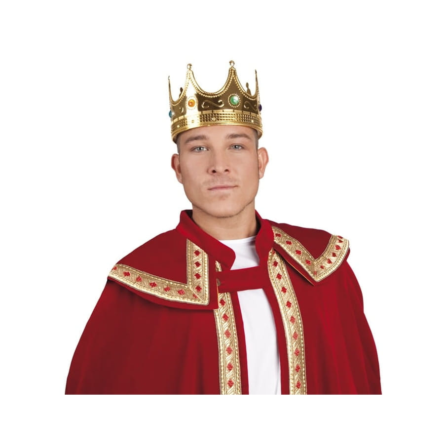Comment se permettre de se déguiser en monarque sans porter le symbole de la royauté ? Cette couronne de roi dorée pour adulte viendra parfaire votre majestueux costume. Elle est en plastique, de couleur or et bronze, et est incrustée de faux joyaux verts, violets, roses, jaunes, rouges et bleus. Vous disposerez d'un modèle faisant environ 63 cm de tour de tête.
