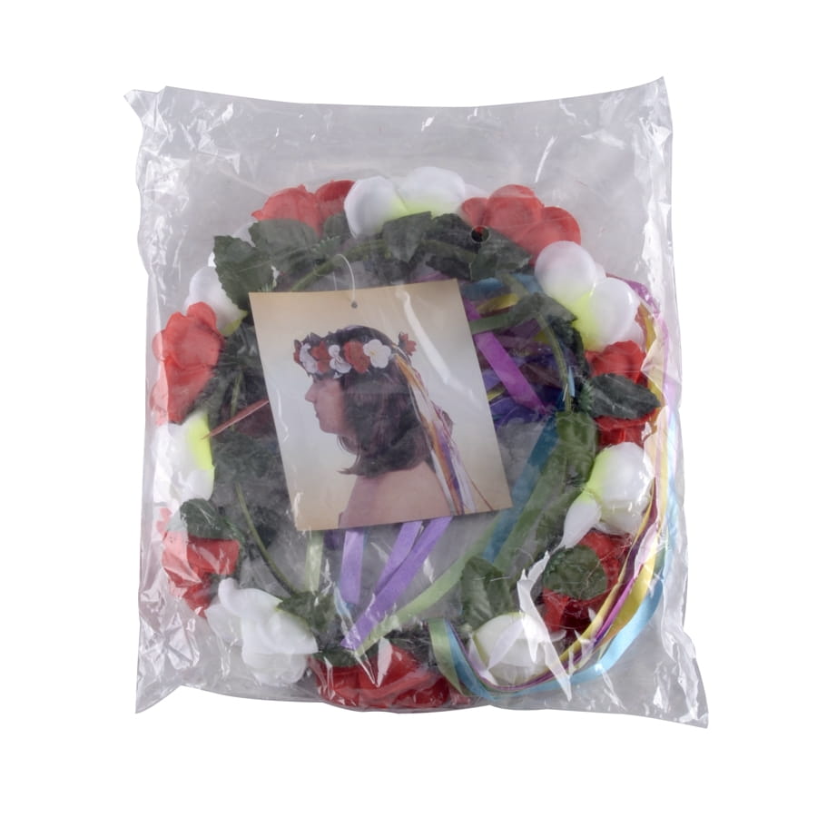 Cette couronne de roses blanches et rouges, à porter autour de la tête, pourra servir pour de nombreuses occasions.