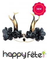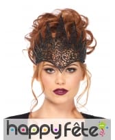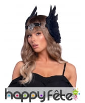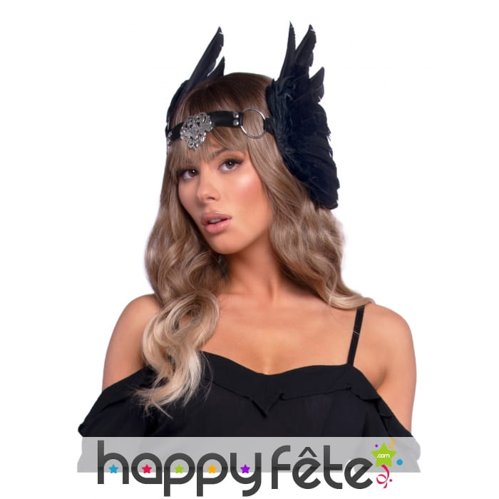 Sur le côté, deux ailes en fausses plumes noires et, sur la partie avant, un petit bandeau décoré d'un médaillon argenté.