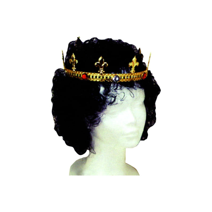 Couronne en métal plaquée or agrémentée de 8 pierres précieuses et de motifs en forme de fleur-de-lys. Elle est idéale pour incarner une princesse ou une reine lors d'une fête basée sur le thème du Moyen Age.