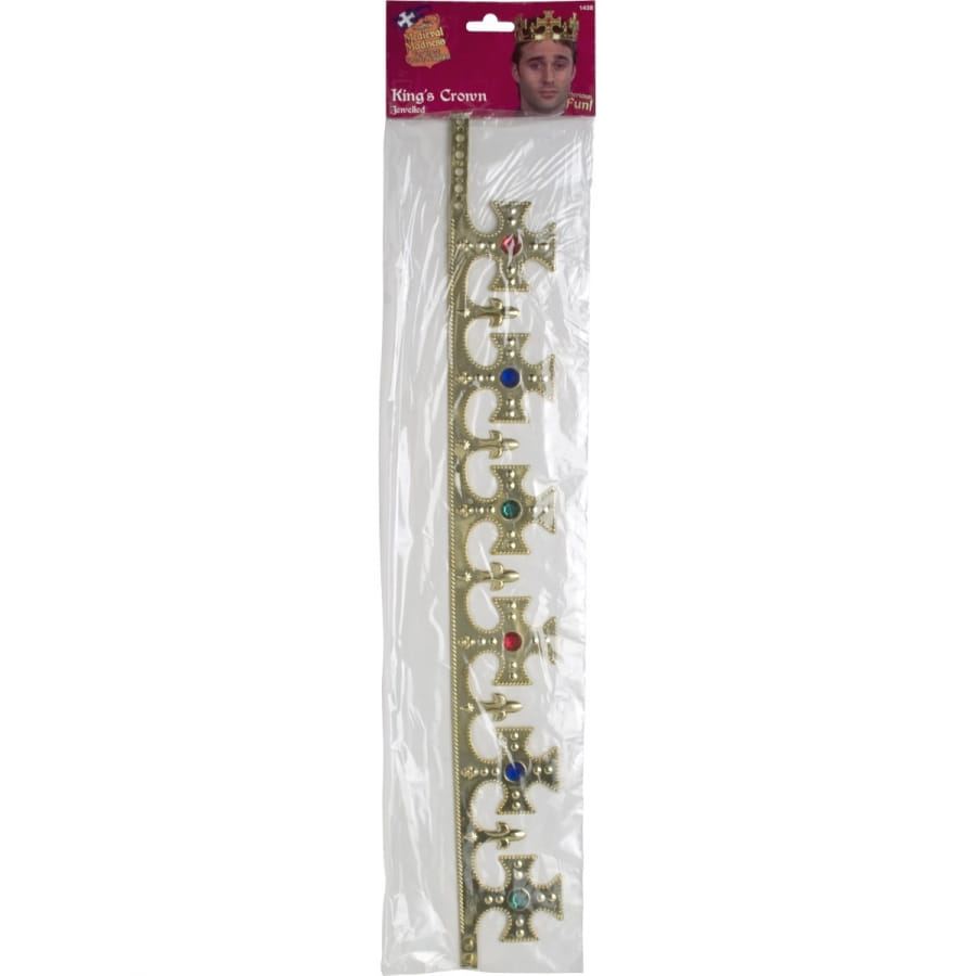 Couronne dorée, pour homme, ornée de pierres précieuses rouges et vertes. Cet accessoire est indispensable si vous souhaitez vous transformer en roi médiéval crédible. Il ne convient pas aux enfants de moins de 3 ans.