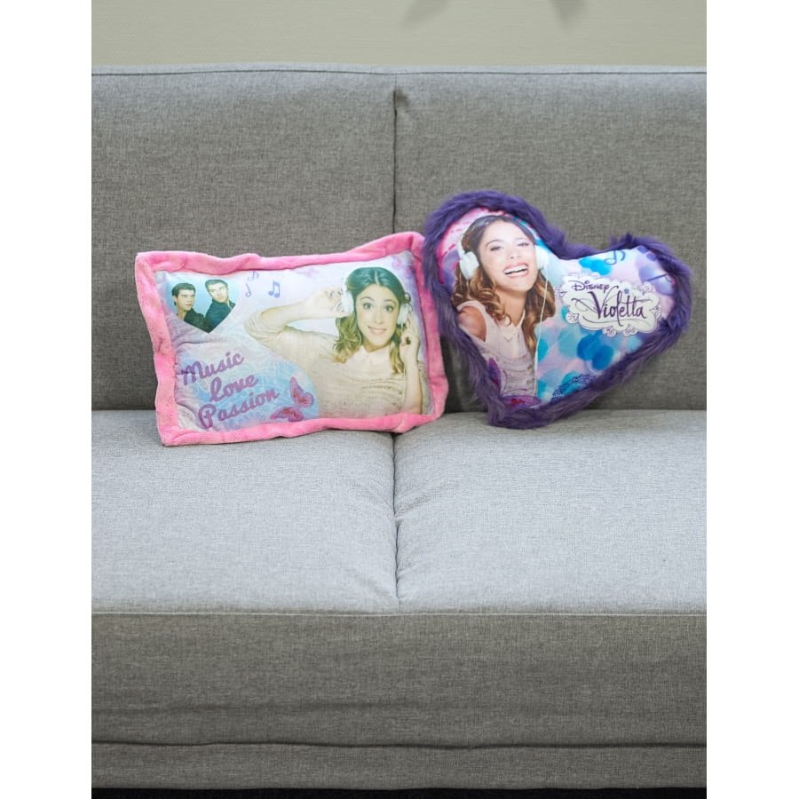 Votre fille est fan de la chanteuse Violetta sur le canal Disney Chanel? Faites lui plaisir avec ce jolie coussin imprimé Violetta de 36cm.