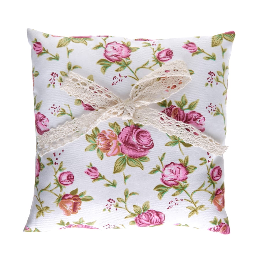 Le motif liberty apporte de la gaieté au coussin de 18 x 18 cm de côté.