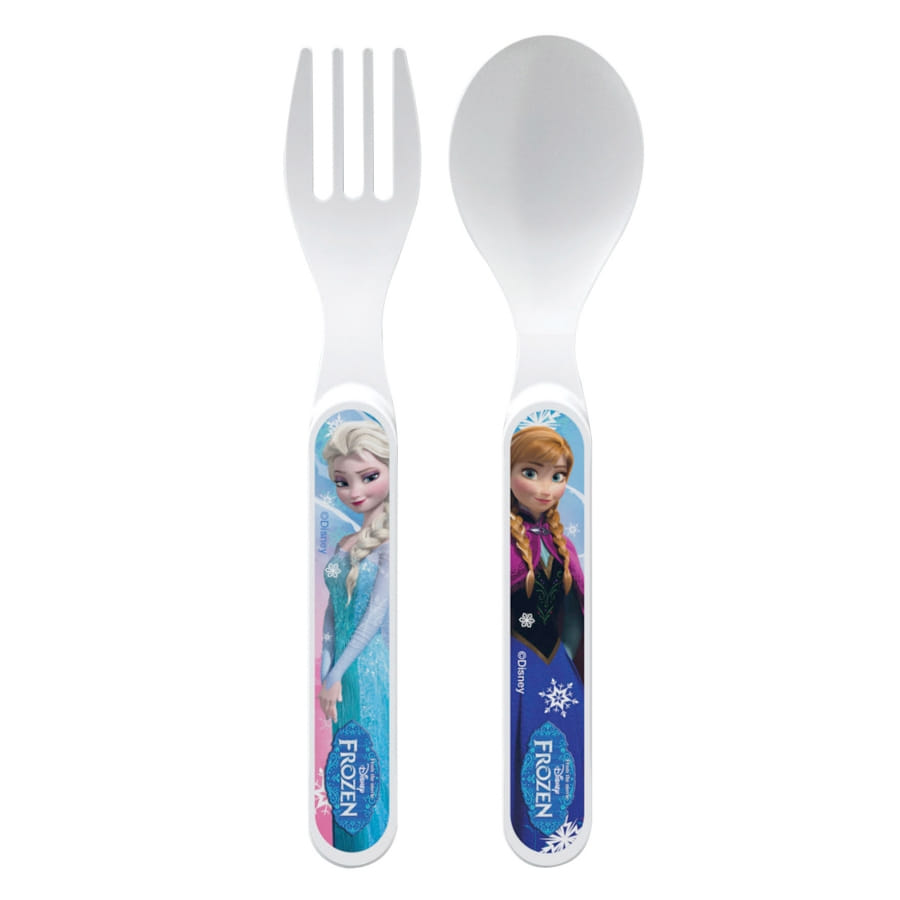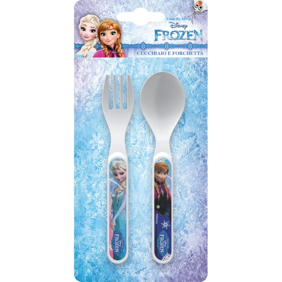 Vous trouverez dans ce paquet, une cuillère à l'effigie d'Anna et une fourchette imprimée Elsa.