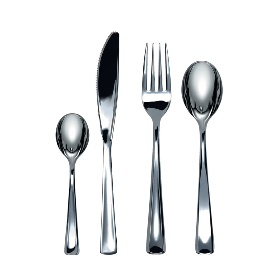 Si vous recherchez de jolis couverts pour vos tables de fête, pour une fête de naissance, de mariage, de Noël ou du Nouvel An, nous avons ce qu'il vous faut. Présentés par lot de 50 dans un sachet, vous pouvez choisir parmi ces couverts métallisés fabriqués en PVC : soit 50 couteaux de 20 cm, soit 50 fourchettes de 19 cm, soit 50 grandes cuillères de 17,5 cm, soit 50 petites cuillères de 13,5 cm, c'est comme vous voulez et selon vos besoins !