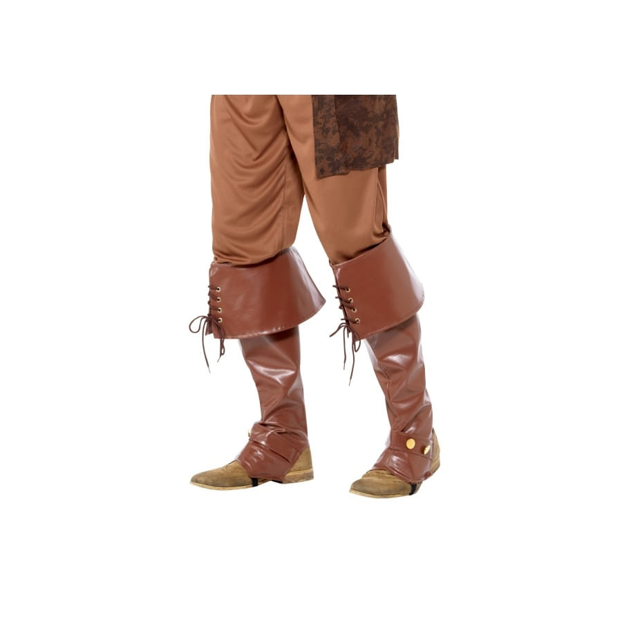 Tous les membres de l'équipage sont sur le pont. Ils n'attendent plus que leur capitaine pour commencer la petite fête. Équipez-vous comme il faut en enfilant ces couvres bottes marron de pirate, deluxe. Vous serez transformé en redoutable capitaine d'un bateau pirate avec ce modèle stylé qui remonte jusqu'aux genoux et terminé par des lacets noirs.