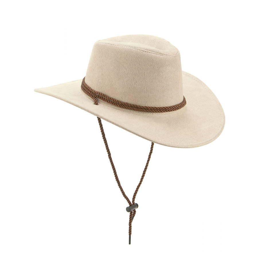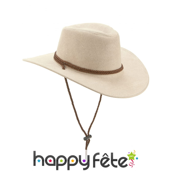 Le chapeau de cowboy beige en suédine de luxe est destiné aux adultes.