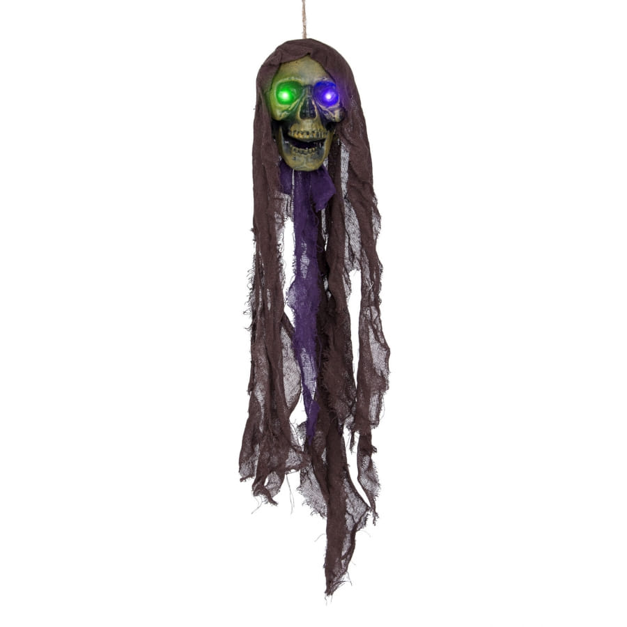Frayeur garantie avec ce Crâne de spectre squelette lumineux à suspendre.