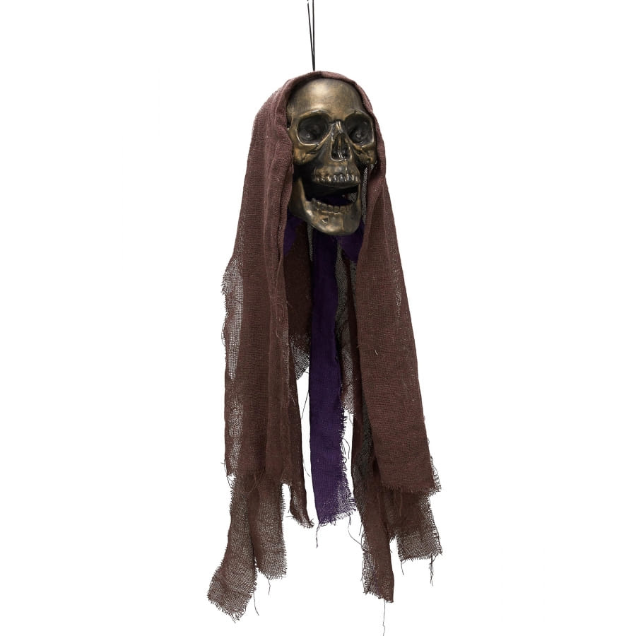 Si vous accrochez ce crâne effet cuivre usé avec ses voilages déchirés et sa mâchoire béante dans votre jardin ou à l'entrée de chez vous, soyez rassuré que vous allez terrifier plus d'un.