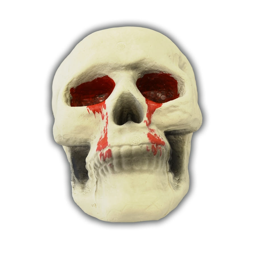 Donnez vie à votre décor d'Halloween en vous procurant ce crâne macabre. De couleur blanche, il mesure 16 sur 19 centimètres et est agrémenté de sang lui sortant des yeux. Cela le rend très horrifiant, le rendant idéal pour une nuit d'Halloween macabre.