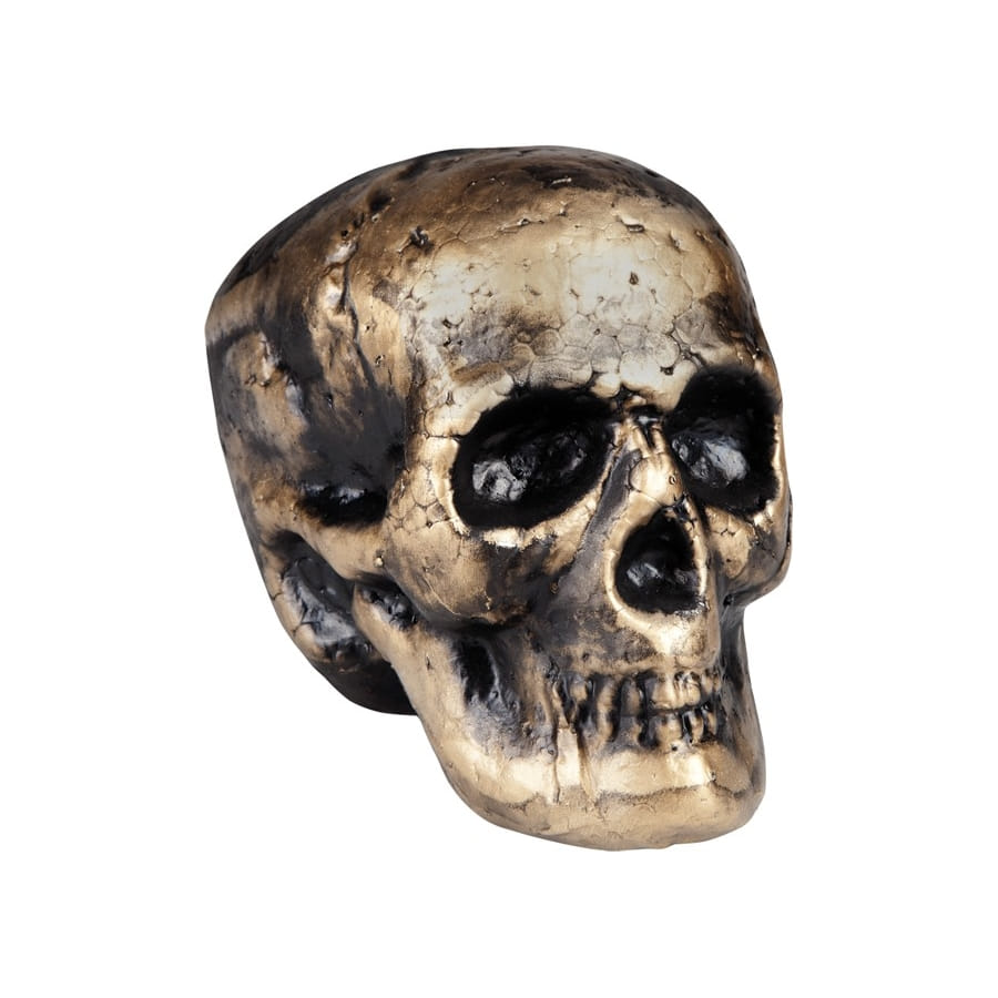 Le crâne décoratif noir et doré de 17 x 14 cm est en polystyrène.