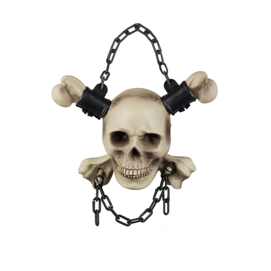 Le crâne de squelette enchaîné décoratif de 28 cm est en plastique.
