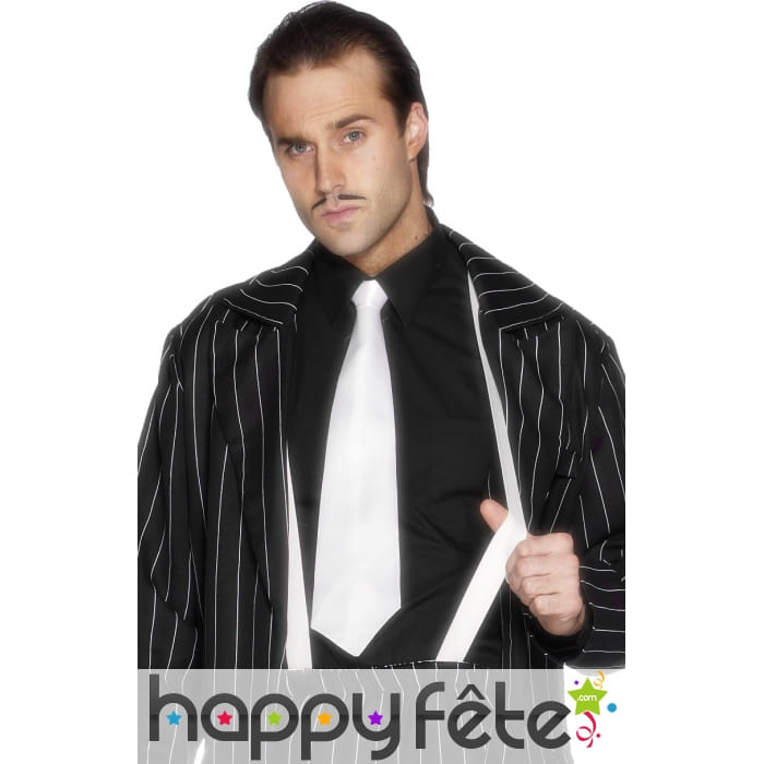 Cravate de gangster de couleur blanche. Cet accessoire est idéal pour semer la terreur dans la peau du Parrain durant un carnaval.