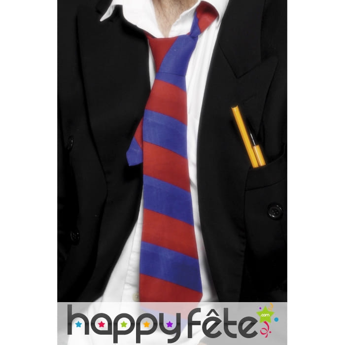 Petite cravate d'écolier à rayures de couleur rouge et bleue, pour homme ou garçon. Servez-vous de cette cravate afin de donner un peu plus de crédibilité à votre dégusement d'écolier.