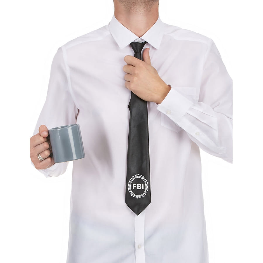 La cravate noire imprimée FBI est un accessoire unisexe qui vous permettra de compléter votre costume d'agent spécial.