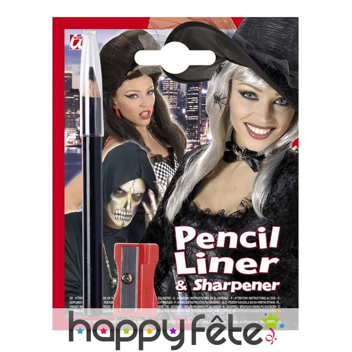 Nous vous dévoilons notre crayon de maquillage noir fin avec taille crayon.