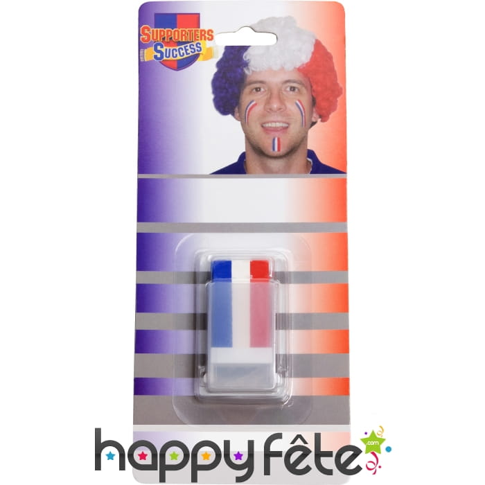 Supportez votre équipe, ou durant la fête nationale ce stick make up tricolore vous sera utile. Facile à utiliser vous pourrez porter fièrement les couleurs de votre équipe. Vous pourrez aussi l'utiliser sur le thème autour du monde Le crayon 3 en 1 est de couleur bleu, blanc et rouge.