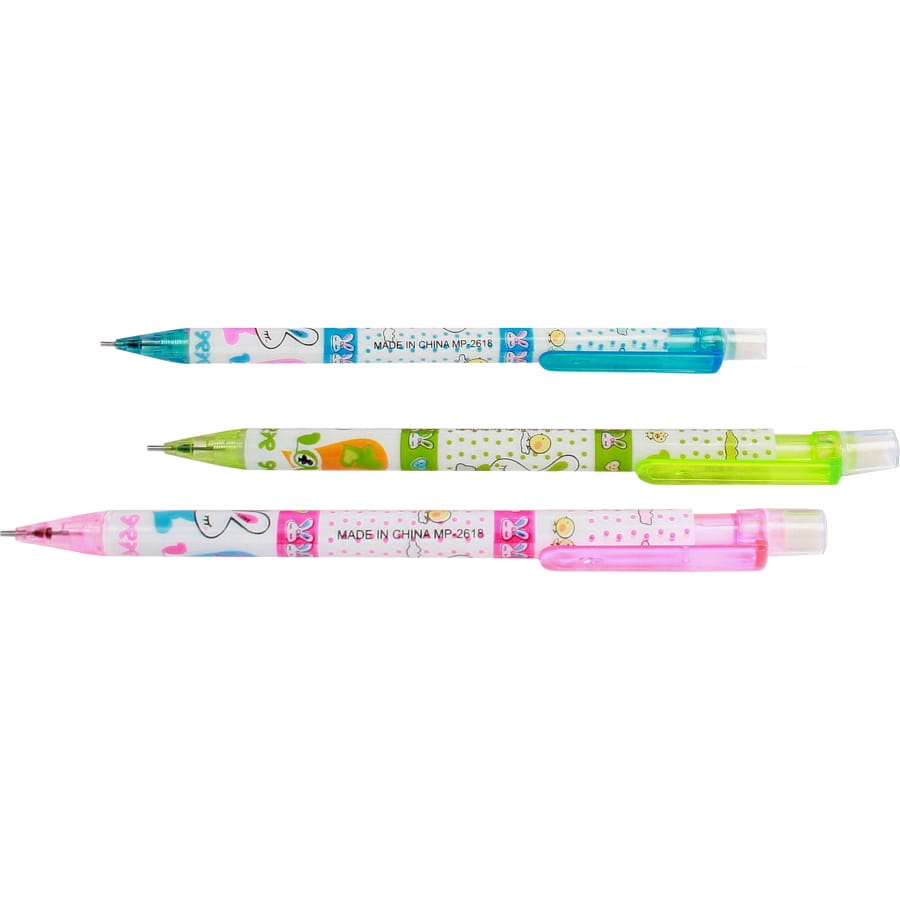 Crayon pousse-mine mesurant 15 centimètres de long, avec gomme incluse à l'extrémité. Au moment de passer votre commande, vous ne pourrez choisir ni le modèle ni la couleur du crayon. Vous recevrez un des modèles présentés. Il est idéal pour encourager vos enfants à faire leurs devoirs!