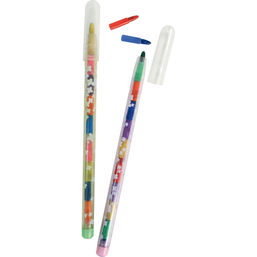 Crayon "pousse-mine" contenant 6 couleurs de mine différentes et mesurant 14 centimètres de long. Au moment de passer la commande, vous ne pourrez choisir ni le modèle ni la couleur du crayon. Vous revecrez un des modèles présentés. Ce crayon ajoutera de la variété aux coloriages de vos enfants!