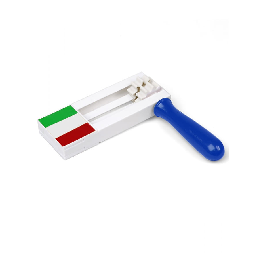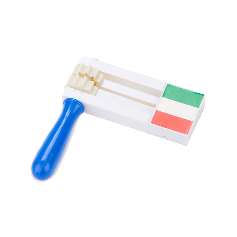 Elle est faite en plastique et est aux couleurs de l'Italie : vert, blanc et rouge.