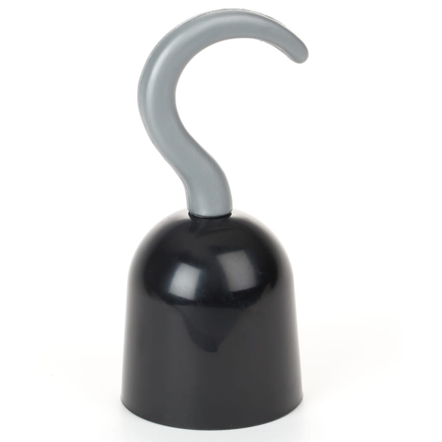 Il s'agit d'un accessoire entièrement confectionné à base de matière plastique. Conçu pour remplacer une main de pirate, il est formé d'un support noir surmonté d'un crochet gris qui imite le métal argenté. L'accessoire est idéal pour un costume de capitaine pirate le soir d'Halloween.