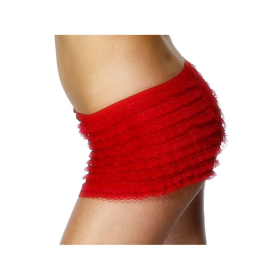 Culotte avec froufrou de couleur rouge. Elle est disponible en taille unique. C'est un accessoire idéal pour compléter une tenue de séductrice pour la Saint Valentin.
