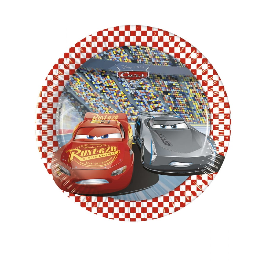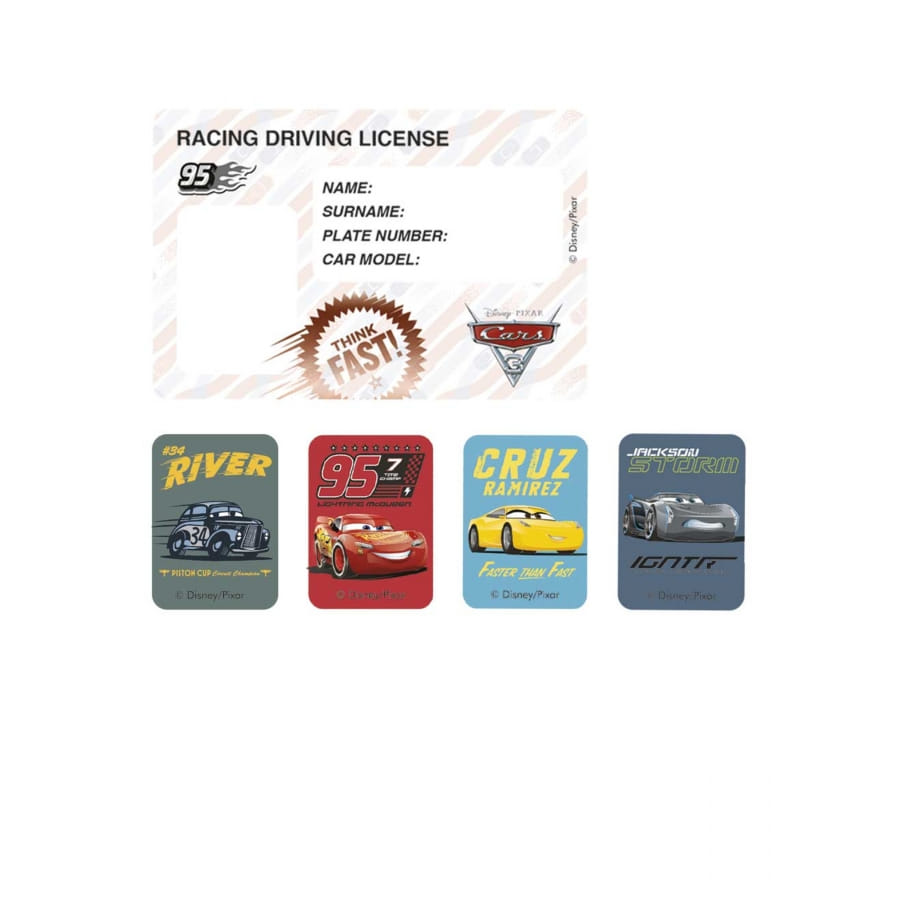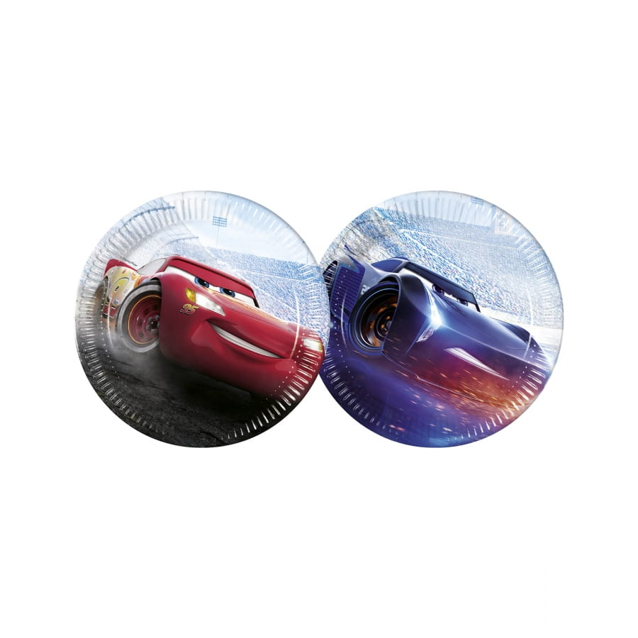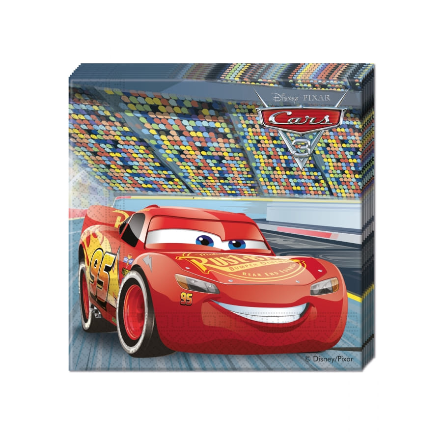 • Accessoires décoratifs sur le thème Cars 3 comprenant au choix: 8 gobelets McQueen, 8 assiettes de 23 cm, 1 guirlande à fanions, 1 pinata, 1 nappe de 120 x 180 cm, 1 guirlande articulée, 4 pailles, 1 centre de table, 13 bougies, 6 sacs cadeaux, 6 pailles, 20 serviettes, 8 assiettes de 23 cm, 8 gobelets, 6 chapeaux, 6 pailles, 8 assiettes de 20 cm, 3 suspensions en spirale, 1 présentoir à cupcakes, 1 déco de porte, 4 invitations, 8 assiettes de 20 cm.
