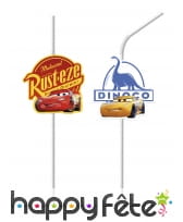 - 6 pailles en plastique dotée d'une vignette ronde cartonnée imprimée Flash.