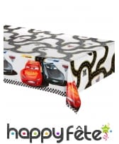 Elle est imprimée des personnages de Cars 3 et d'un long circuit de course.