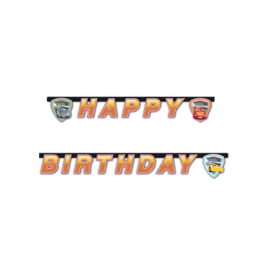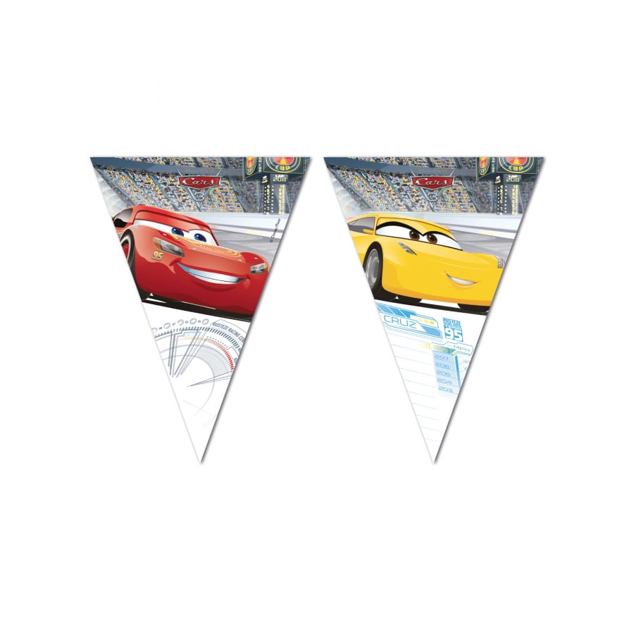 - 1 guirlande à fanions triangulaires imprimées des personnages de Cars 3.