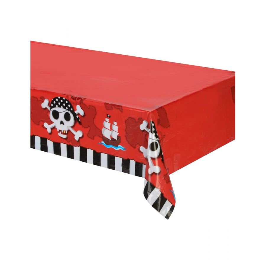 - 1 grande nappe en plastique souple de 120 x 180 cm représentant différents motifs sur le thème de la piraterie.