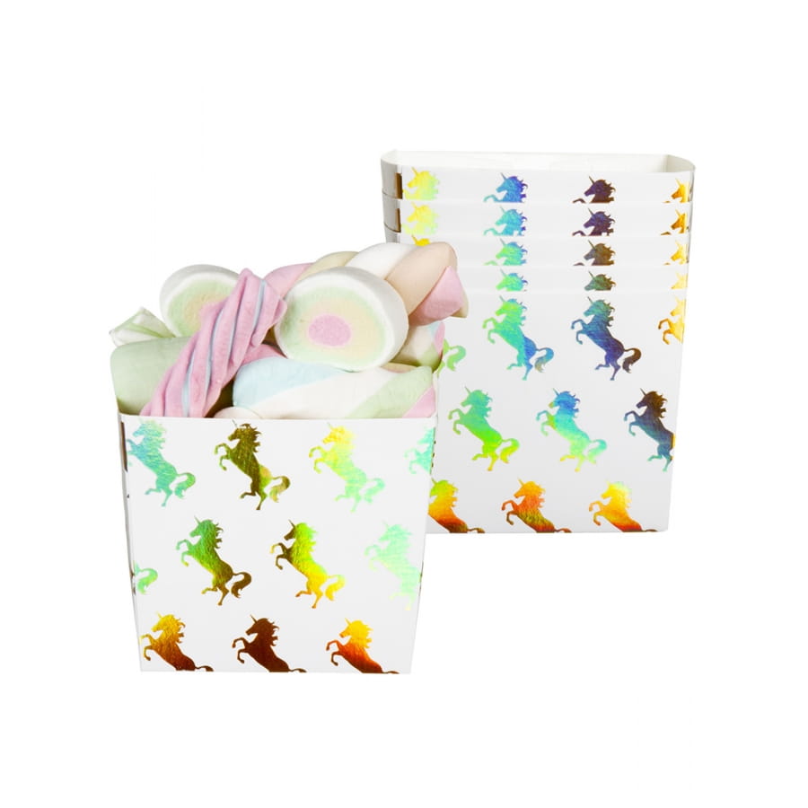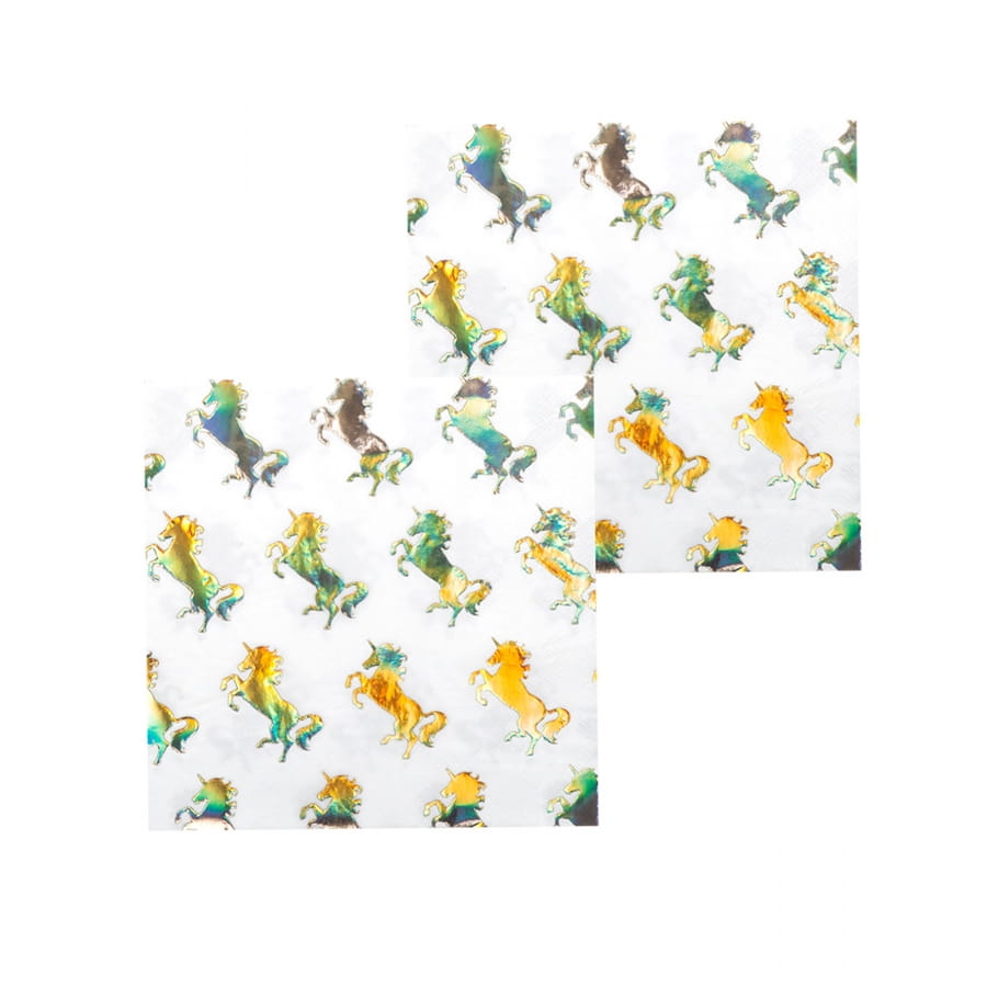 Ils sont imprimés de licornes holographiques sur fond blanc.