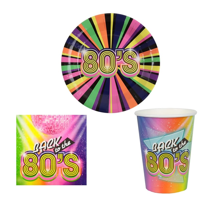 - 20 serviettes multicolores imprimées "BACK to the 80's" (retour aux années 80).