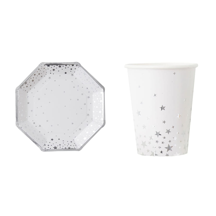 Tous ces éléments sont agrémentés par des étoiles argentées brillantes qui leur donnent un style joyeux.