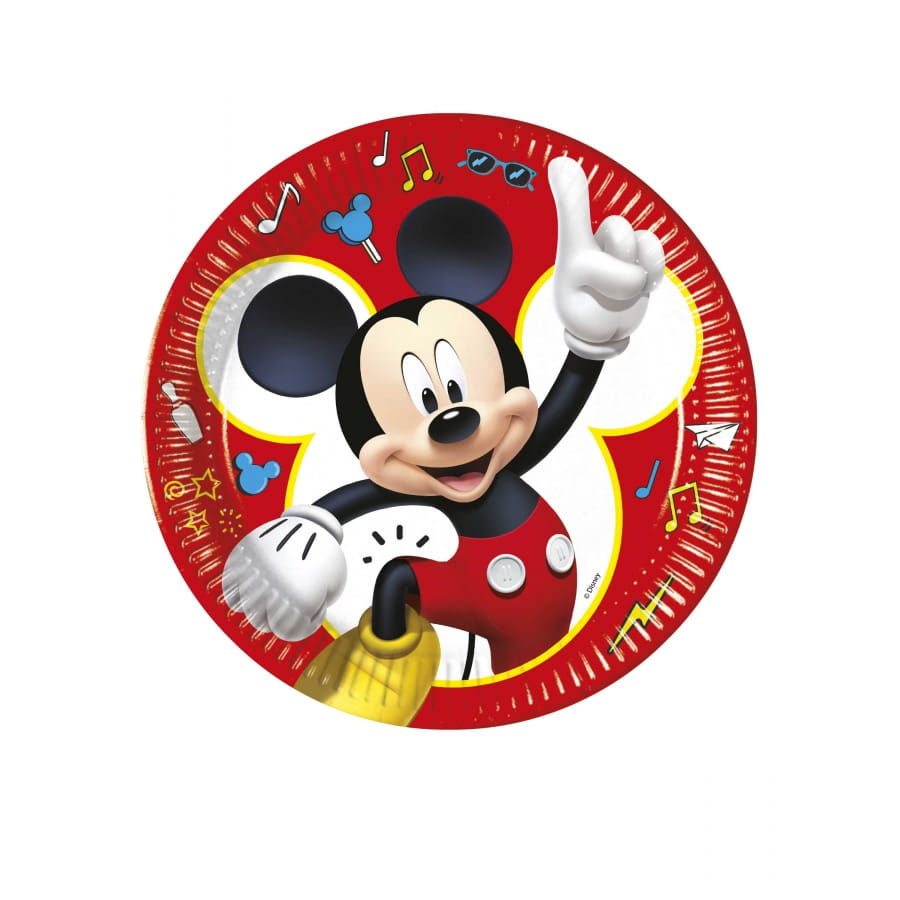 8 assiettes de 20 cm de diamètre, sur lesquelles on peut voir Mickey tout joyeux en compagnie de son compagnon Pluto.
