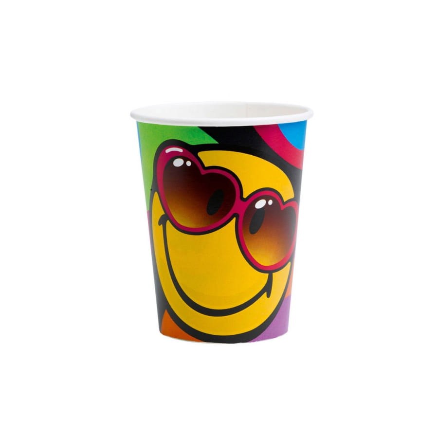 - 8 gobelets ornés d'un emoji portant une paire de lunettes et arborant un grand sourire