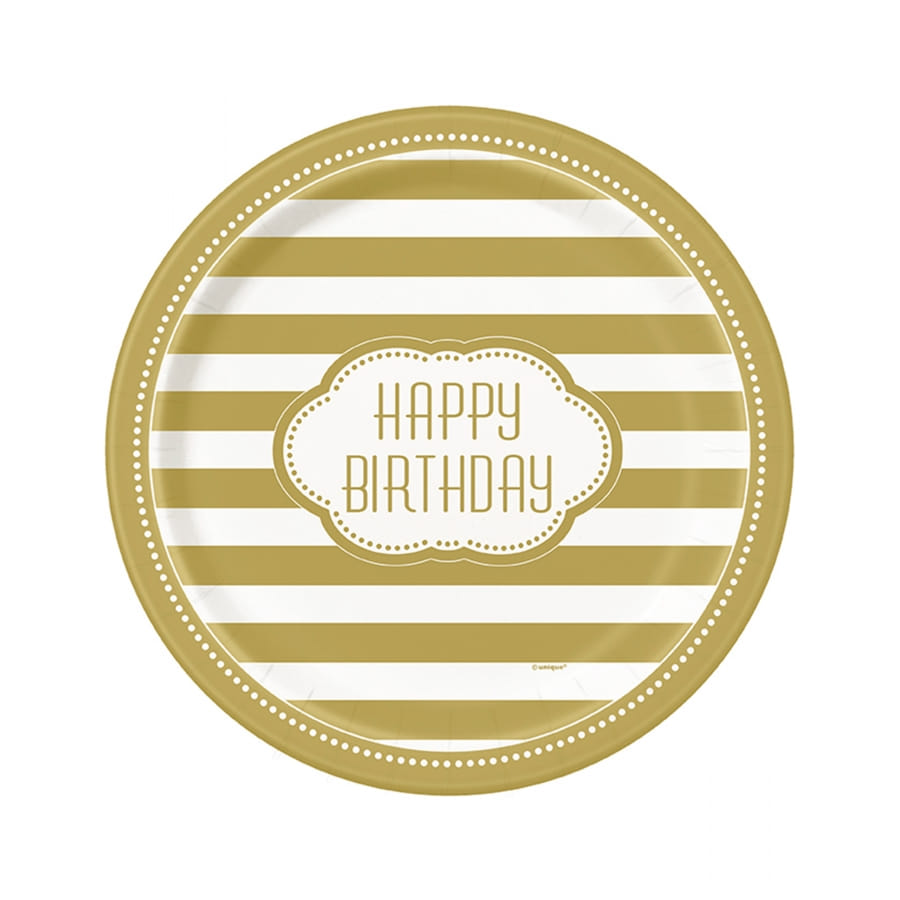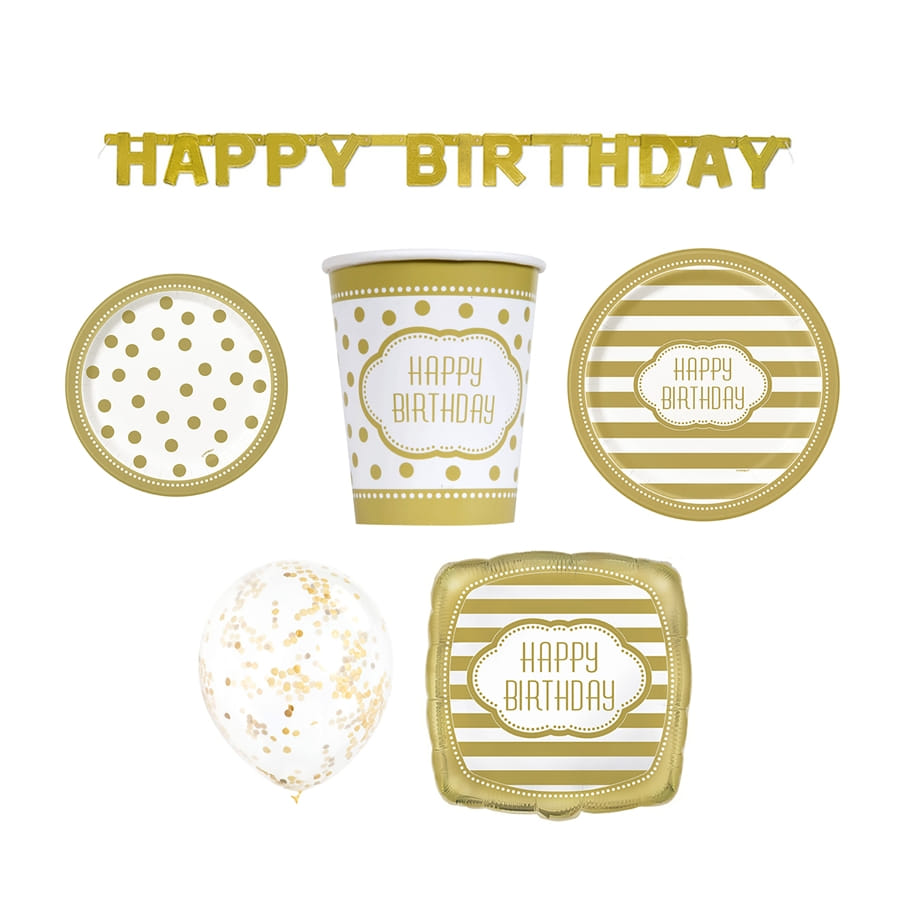 Elles sont floquées du message Happy Birthday en doré au centre et des rayures horizontales blanches et dorées agrémentent l'ensemble.