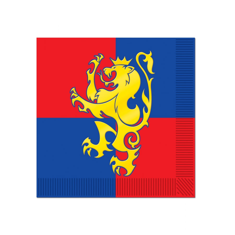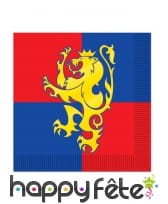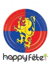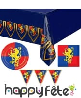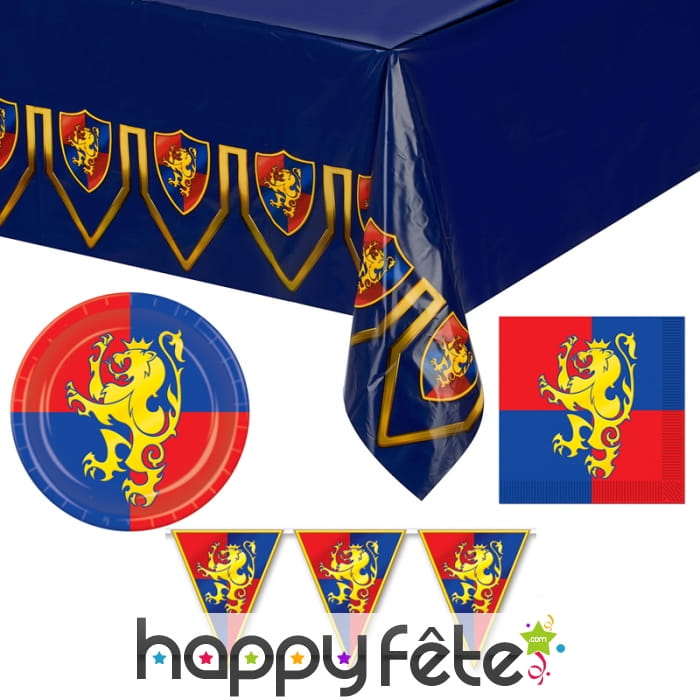 Ces articles de décoration de table sont bleus et rouges avec le motif du lion jaune.