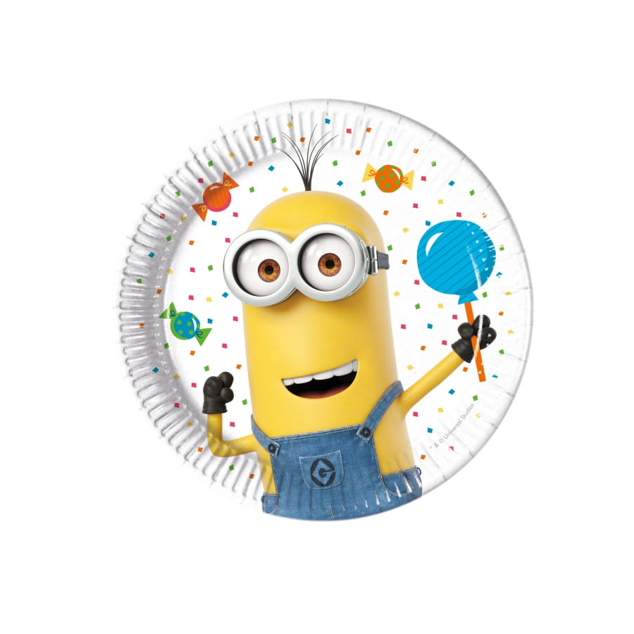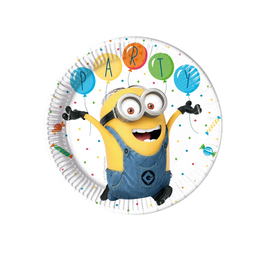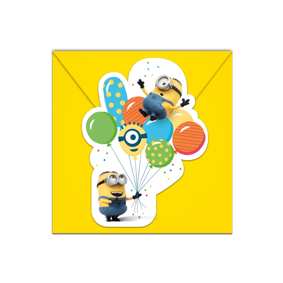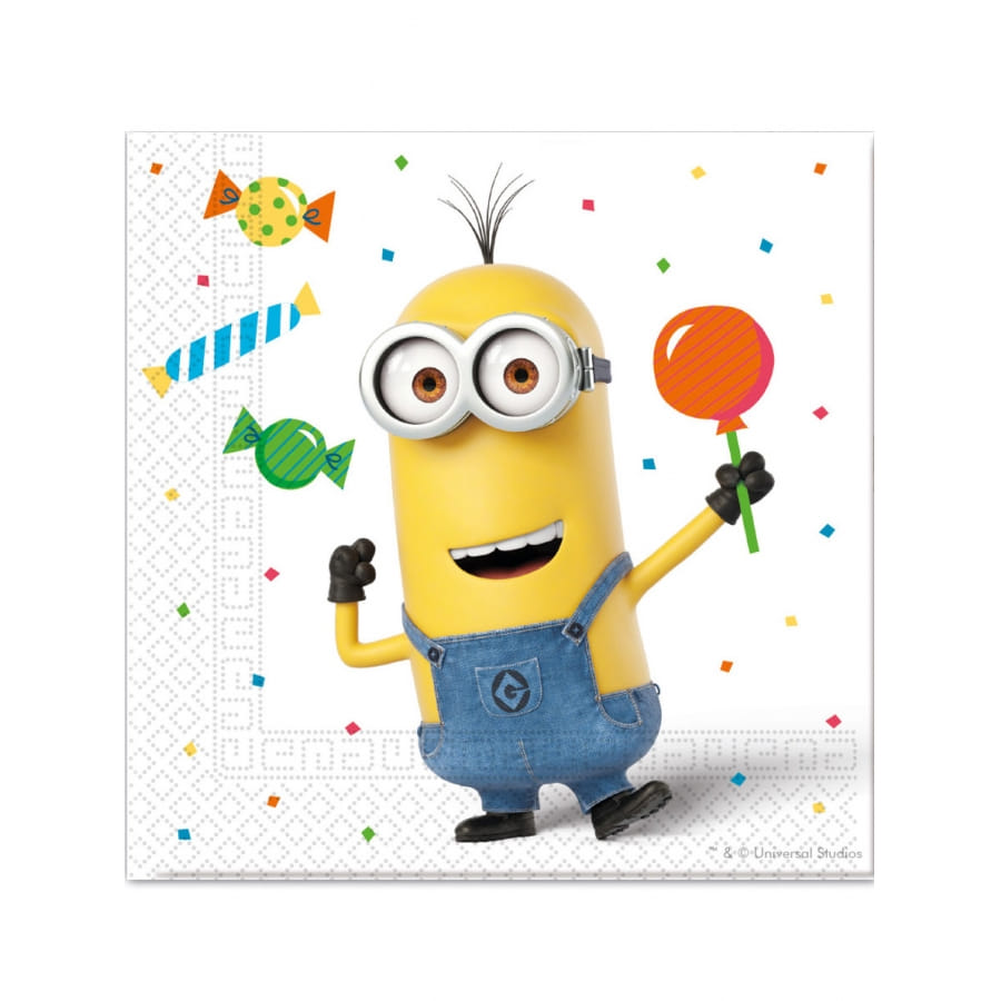 Elles sont imprimées d'un Minion entouré de confettis, de bonbons et tenant un ballon de baudruche.