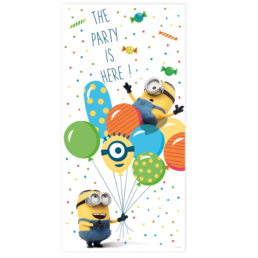 Elle est imprimée des Minions festifs et de l'inscription The Party is here!