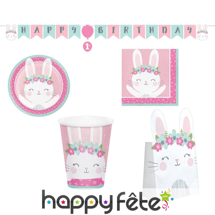 Mettez les petits plats dans les grands avec cette déco petit Lapin roses pour fête d'anniversaire.