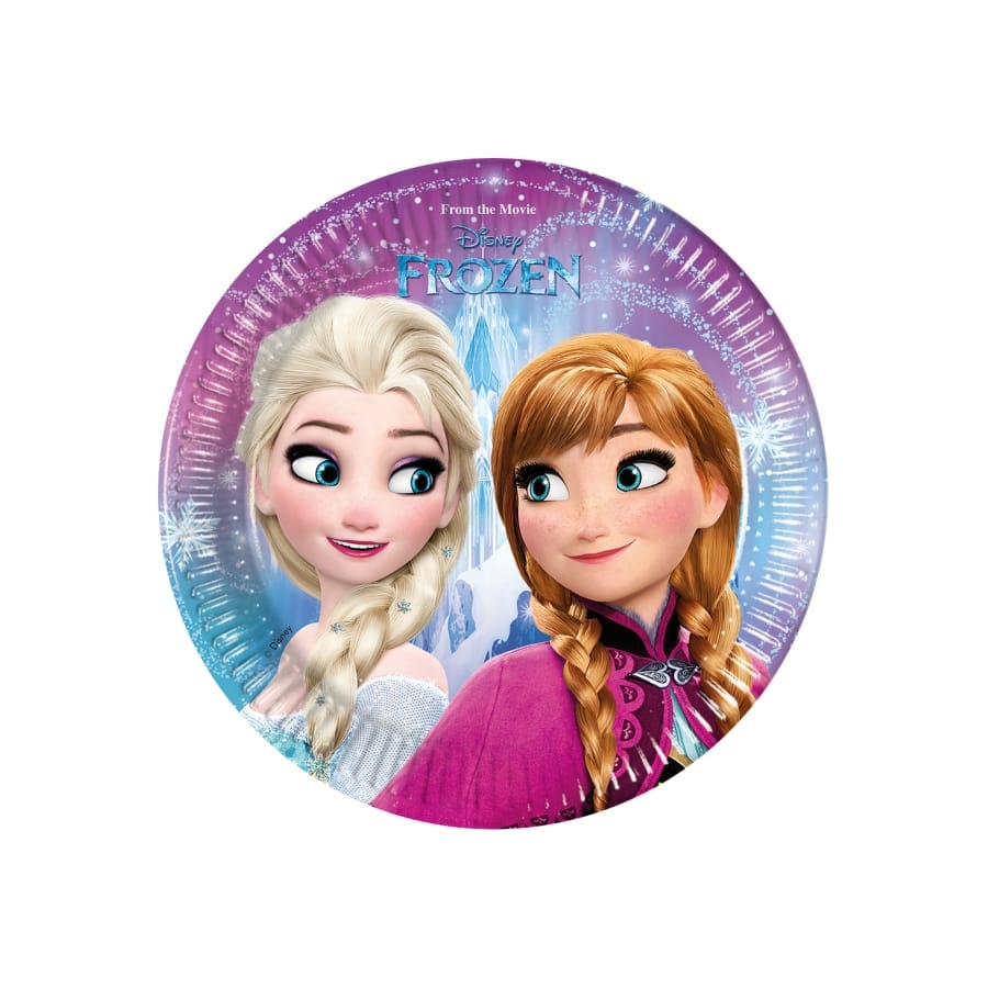 Elles mesurent environ 23 cm de diamètre et sont imprimées des deux princesses sur un fond bleu et blanc.