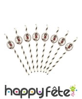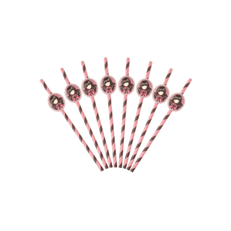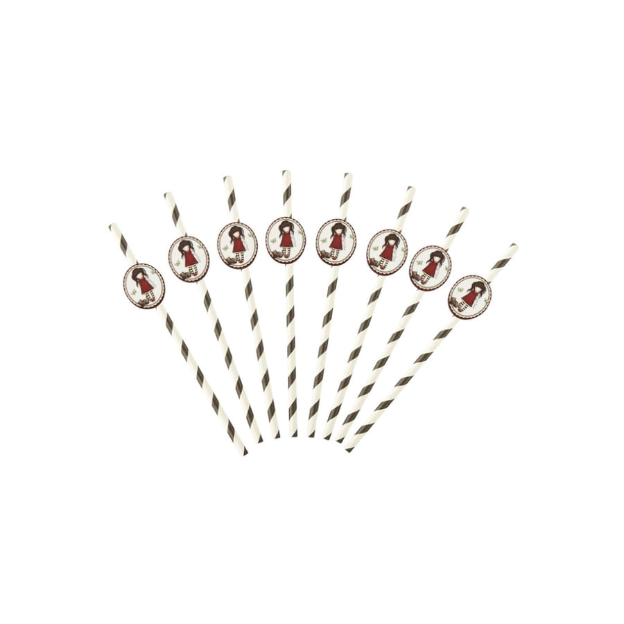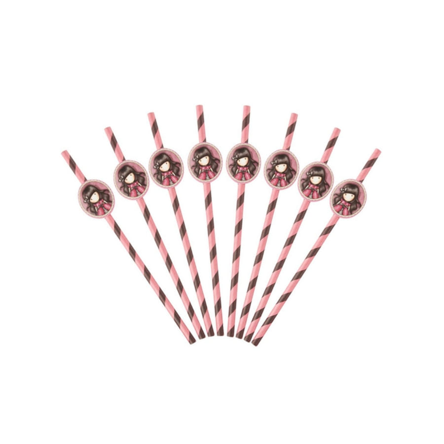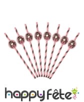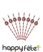 - 8 pailles roses dotées d'une vignette en carton imprimée de Santoro.
