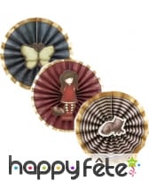 - 3 éventails de forme circulaire avec bordure dorée.