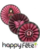 - 3 éventails roses avec bordure noire à pois blancs.