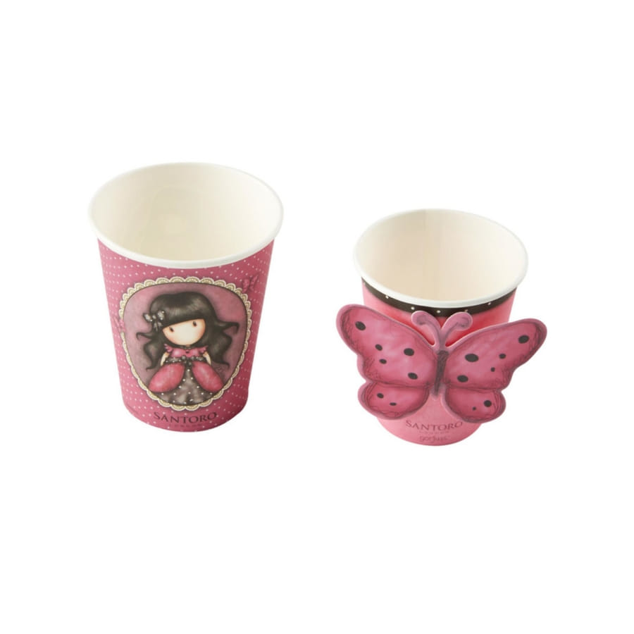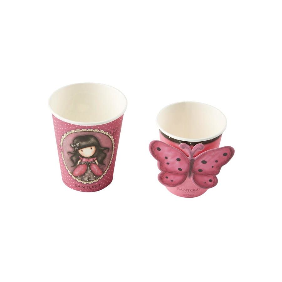 - 8 gobelets en carton de couleur rose.