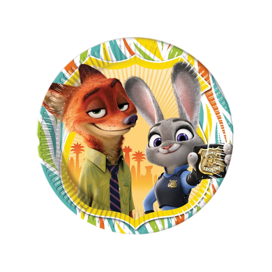 Un pack de 8 assiettes en carton représentant deux personnages de zootopie.