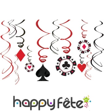 Voici une idée des plus originales pour organiser une fête à thème : casino et argent. Transportez vos convives dans le monde du jeu grâce à nos fameux objets décoratifs de casino, on croirait vraiment y être car tout semble si réel. Déballez vos tables et faites vos jeux ! Côté jeu justement, nous vous en proposons une belle kyrielle : un jeu de carte de poker, un jeu de carte et jeton, une mallette de poker, le jeu du loto ou du bingo, un mini jeu de roulette et plus encore. Pour créer l'ambiance, étalez nos tapis de jeux ou piste de jeux sur vos tables, sans oublier des sacs de banque ou sacs de dollar par ci, par là, ou pourquoi pas un kit de décoration euro pour extérioriser que ce monde est celui de l'argent. Côté décoration, vous pourrez orner votre salle d'une vague de plafond dorée ou de guirlandes casino, et pour parfaire le tout, nous avons gardé le meilleur pour la fin, un canon de confettis en faux billets à faire exploser au summum de l'ambiance. Tout y est, lancez vos dés, les jeux sont faits !