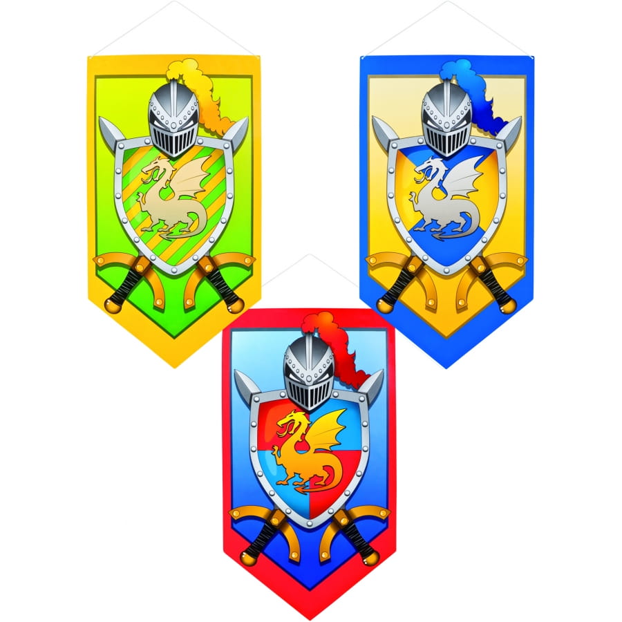 Ce décor en carton de chevalier et dragons sera parfait pour une fête ayant pour thème médiéval ou moyen âge, de couleur bleu, jaune ou rouge avec deux épées, un casque avec un dragon au centre. Ils sont vendus à l'unité. Pas de choix concernant le modèle et de la couleur.