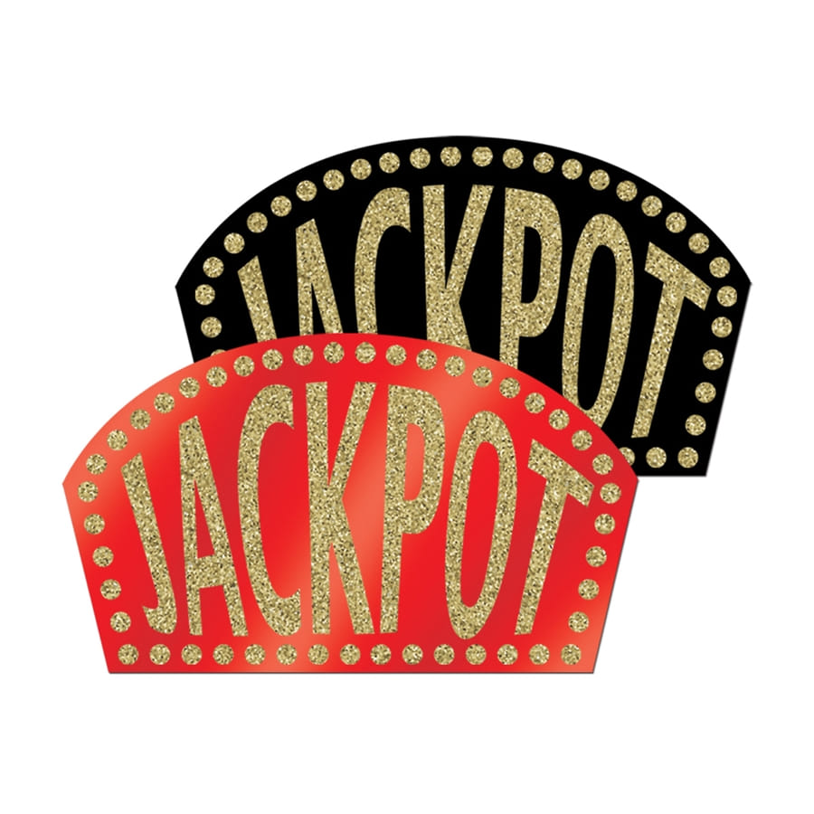 Pour une fête ou une soirée tournant autour du thème Casino ou Argent, nous vous proposons de décorer votre salle avec l'article Décor imprimé jackpot de 26 x 45 cm comprenant une enseigne Jackpot à paillettes dorées, entourée de points dorés. Cet article est offert en rouge ou en noir, mais vous n'aurez pas le choix de la couleur à la commande.